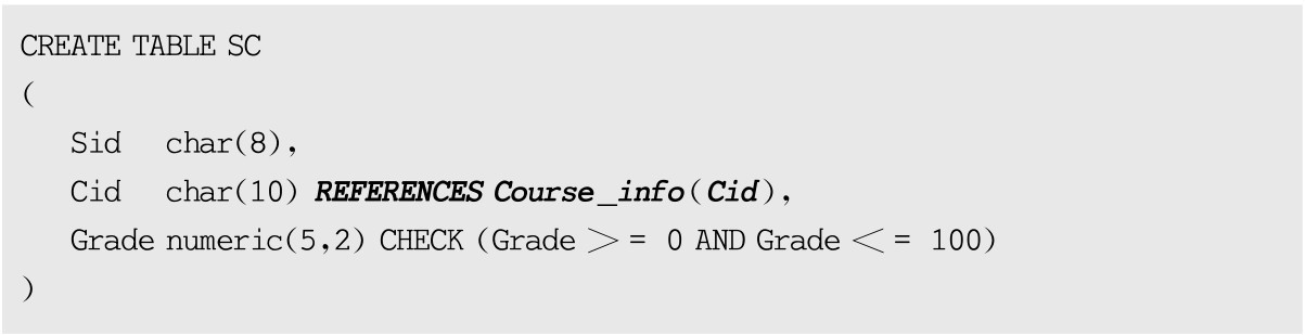 更为普遍的做法是在创建SC表时,就把外键约束设置写进T-SQL代码中: