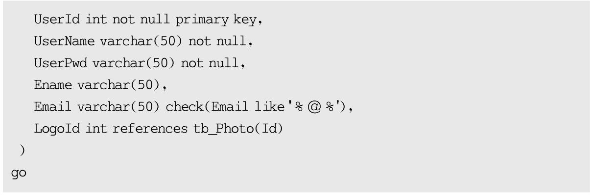 (4)由于在用户信息表(tb_Users)中,要求电子邮箱(Email)必须包含“@”,可以把电子邮箱设置为该表的检查性约束;