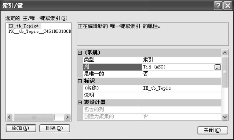 按钮来执行以上T-SQL代码,完成发帖信息表(tb_Topic)唯一性约束的设置。