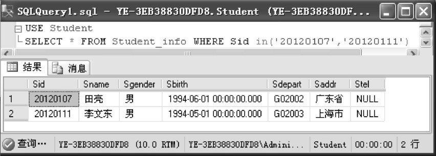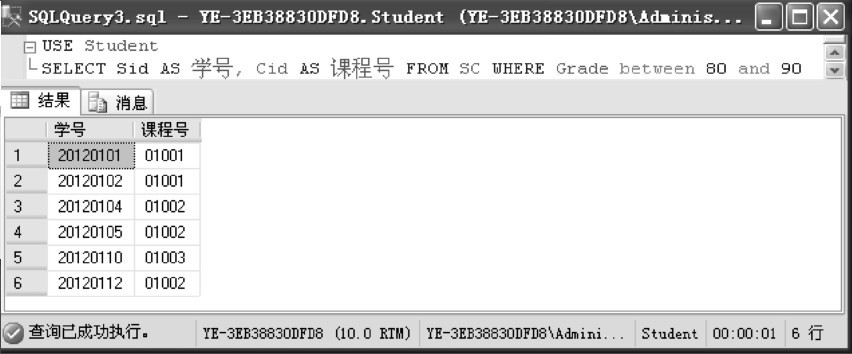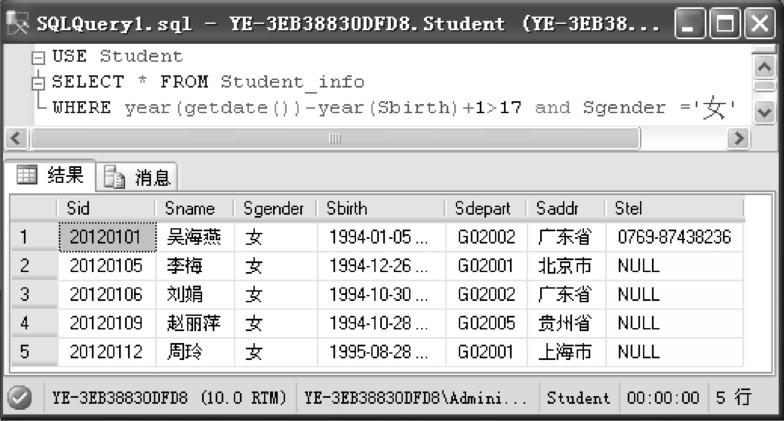 按钮,执行以上T-SQL代码命令,查看结果,如图510所示。