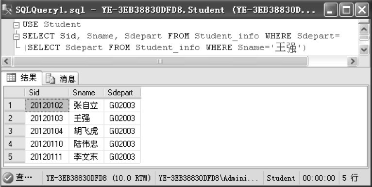 按钮,执行以上T-SQL代码命令,查看结果,如图532所示。