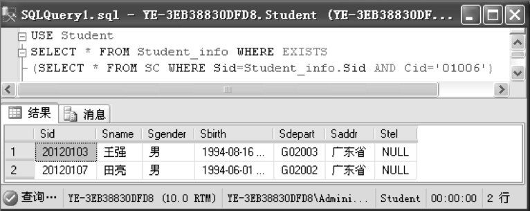 按钮,执行以上T-SQL代码命令,查看结果,如图533所示。