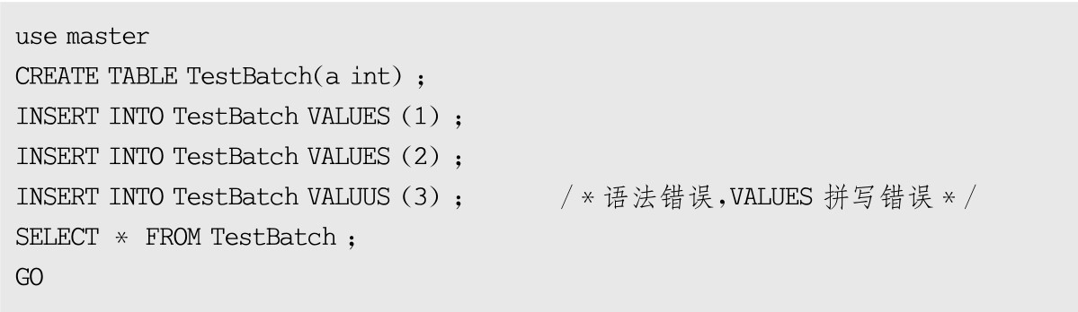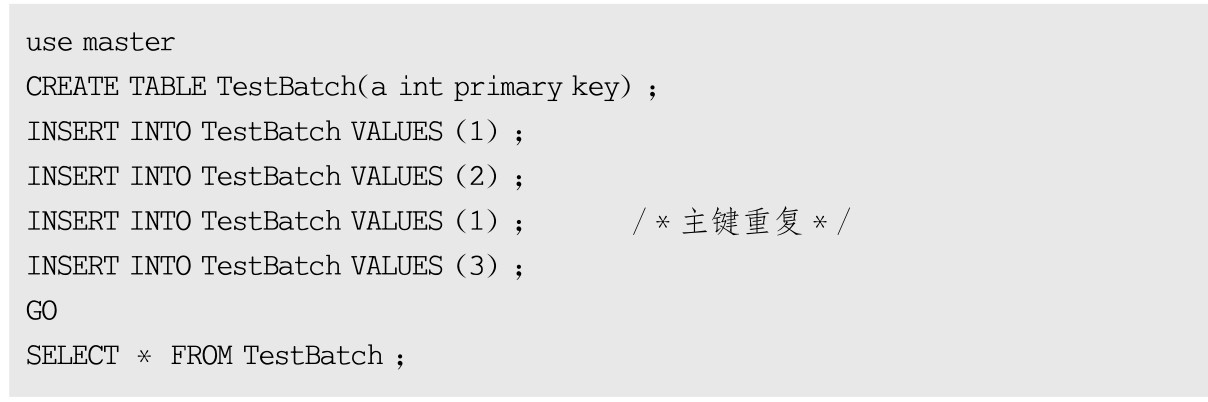 ●某些运行时错误(如违反约束)仅停止执行当前语句,而继续执行批处理中其他所有语句。