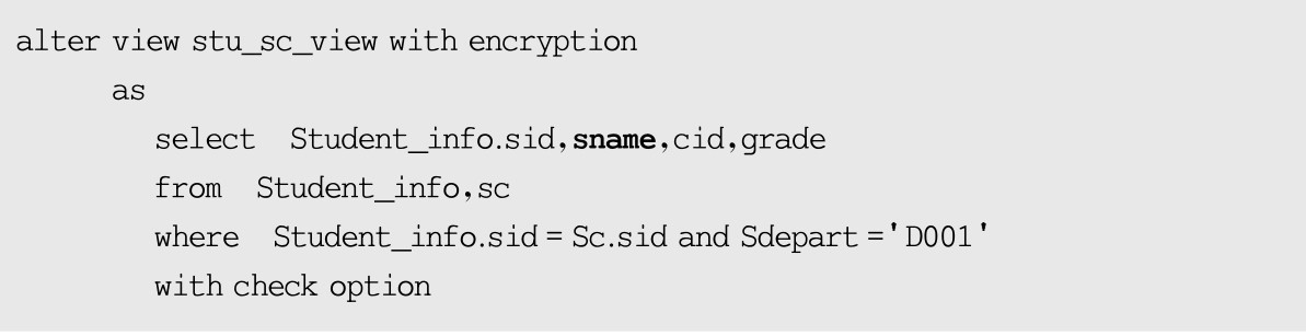 注意:对加密存储的视图不能通过Management Studio修改,例如,对视图stu_sc_view不能用此法修改,但可以使用ALTERVIEW语句修改。