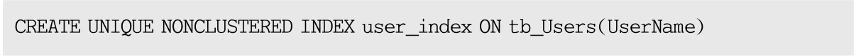 步骤2:为tb_Users表建立名为user_index的索引,T-SQL语句为: