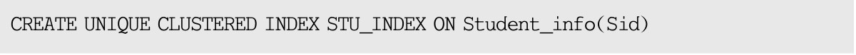 【例7-3】在Student_info表中学号列创建一个名为STU_INDEX的唯一聚集索引。代码如下: