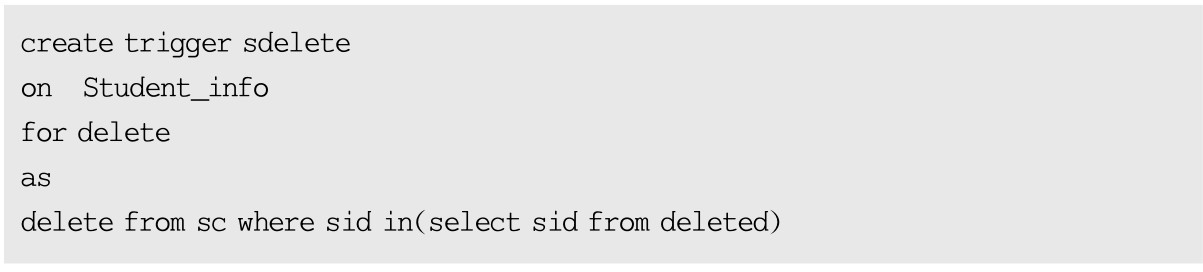 【例7-6】在Student数据库的Student_info表中建立触发器sdelete,实现对Student_info表和SC表的级联删除。