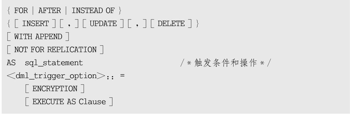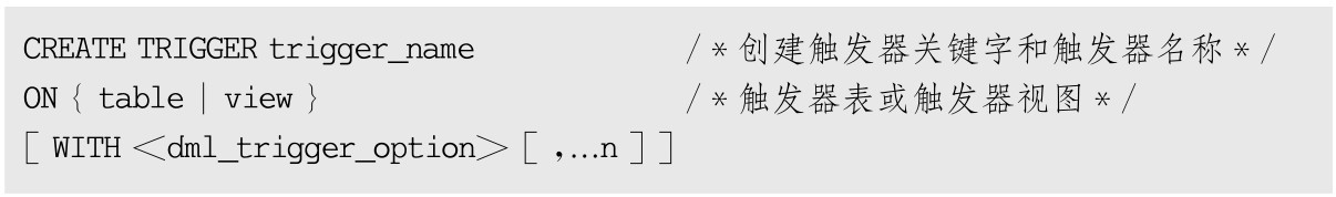 使用T-SQL语句创建触发器的语法格式如下: