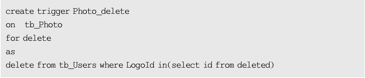 (1)在BBS数据库的tb_Photo表中建立触发器Photo_delete,实现对tb_Photo表和tb_Users表的级联删除。