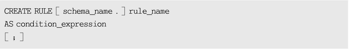 ●rule_name:新规则的名称。规则名称必须符合标识符规则。根据需要,指定规则所有者名称。