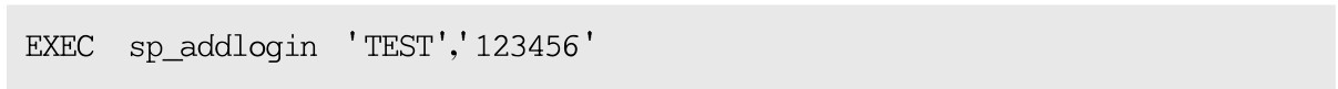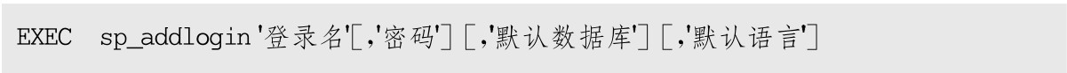 注意:使用系统存储过程创建登录账户的语法格式如下: