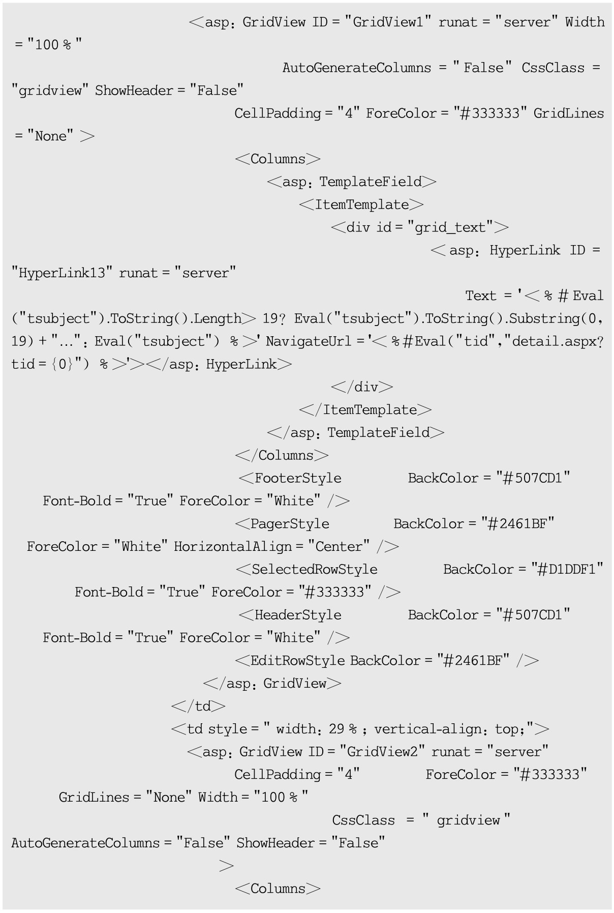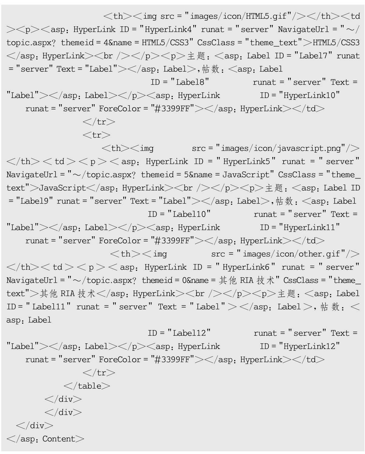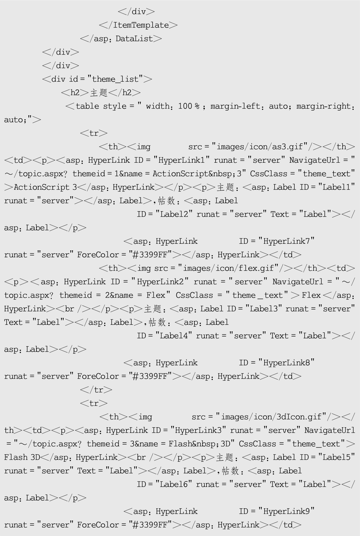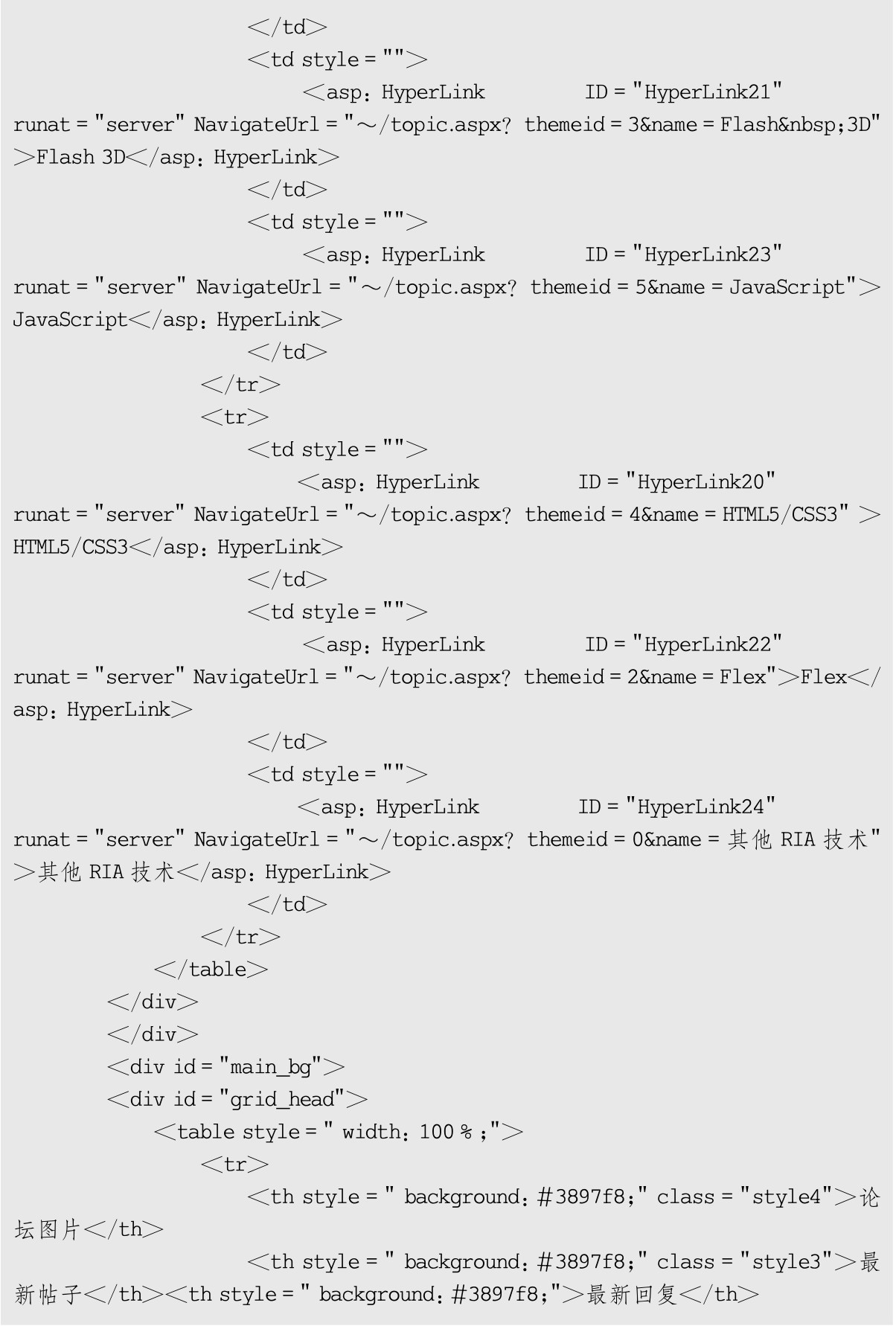 BBS系统首页index.aspx设计部分代码如下: