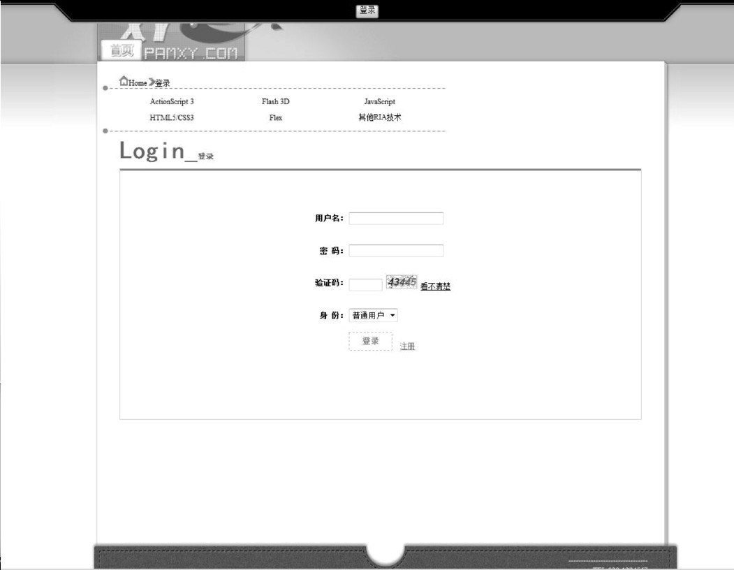 用户登录模块主要用于对用户的管理,核对用户的身份是否合法,用户登录系统的时候,系统将验证用户名和密码是不是已经存在于数据库用户信息表中,同时判断是普通用户还是管理员,当用户通过身份验证后,根据用户的权限进入系统的管理模块页面。系统登录页面如图9-20所示。