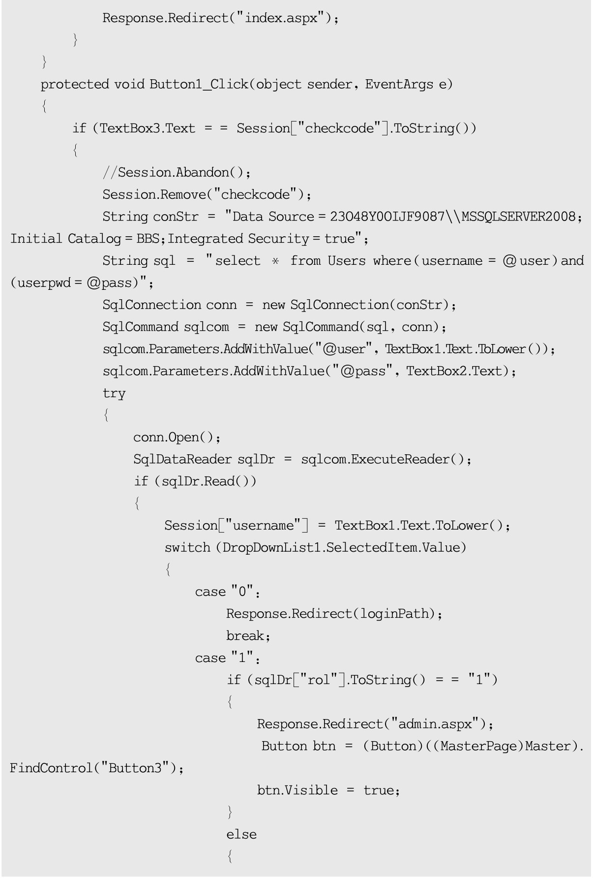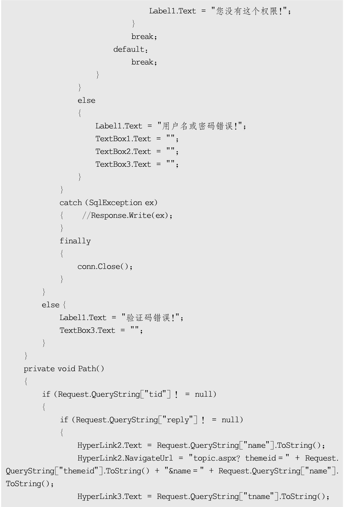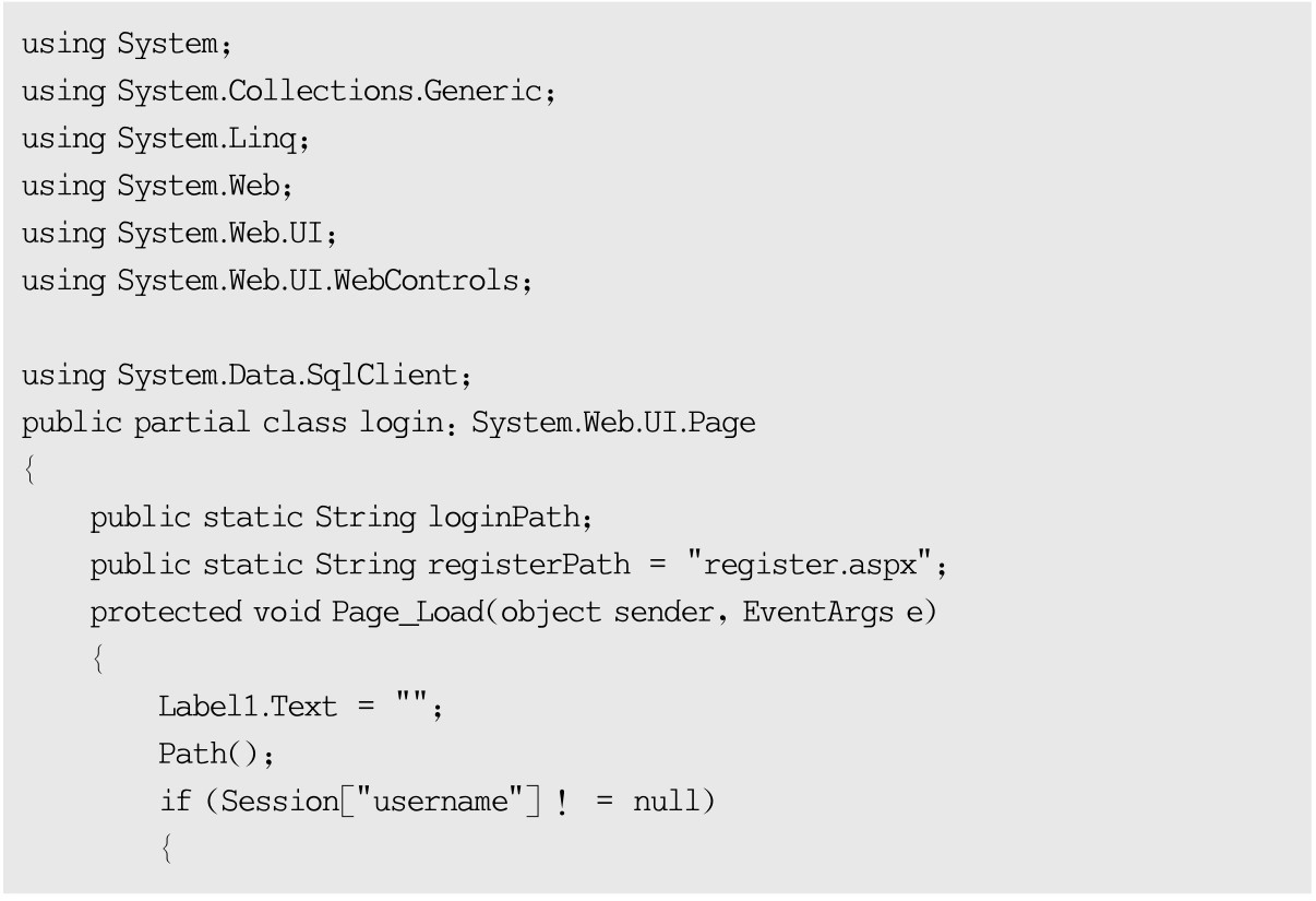 用户登录后台验证实现类文件login.aspx.cs源代码如下: