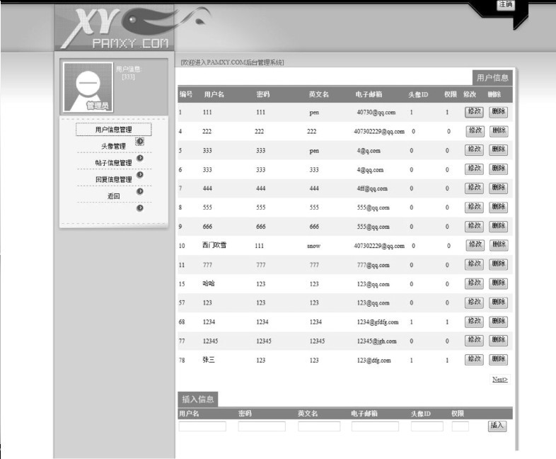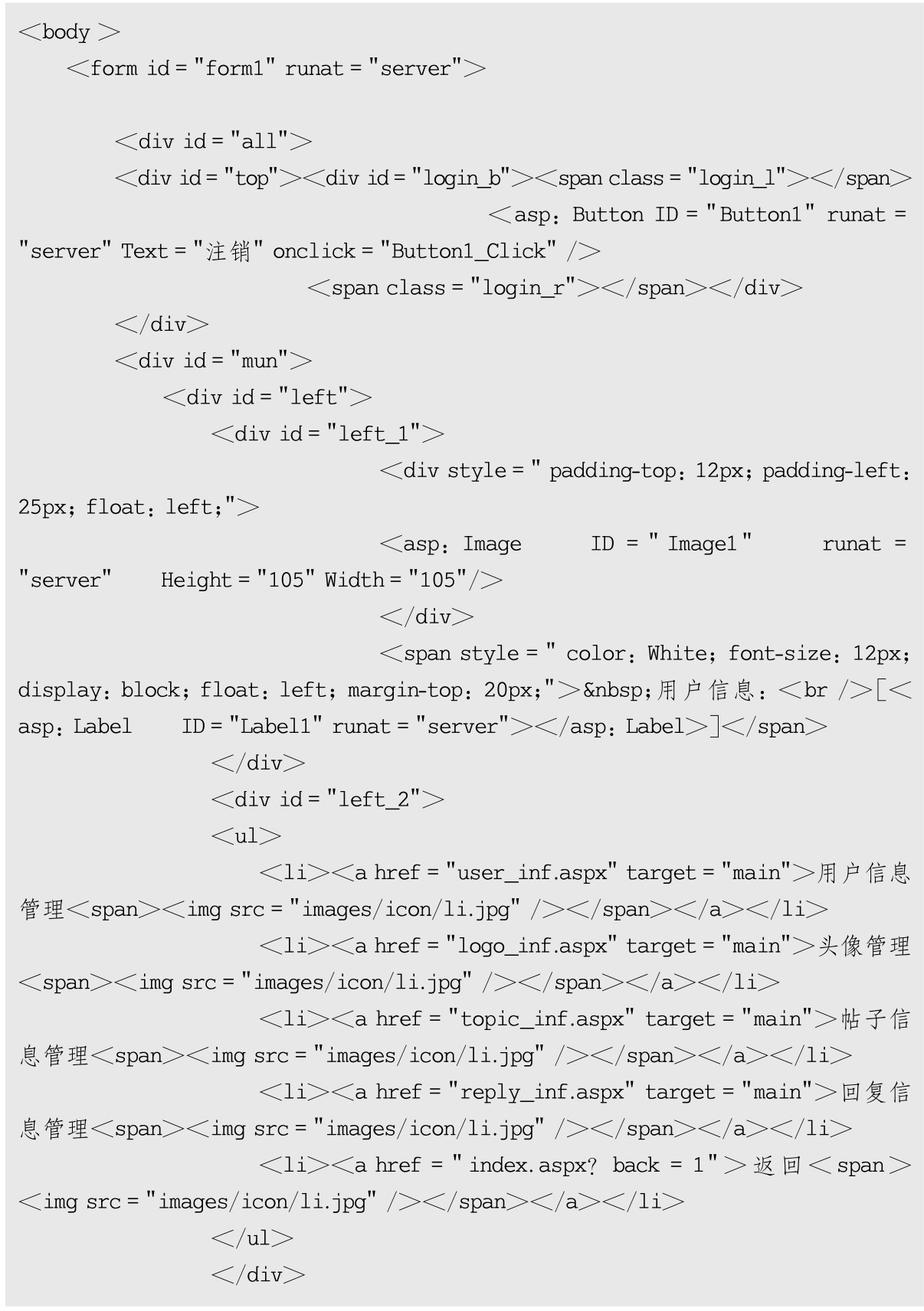用户管理页面admin.aspx部分代码如下: