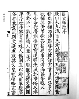 现存的类书,如《北堂书钞》和《艺文类聚》,在当时所制造的这类出品中,只占极小部分。此外,太宗时编的,还有一千卷的《文思博要》,后来从龙朔到开元,中间又有官修的《累璧》六百三十卷、《瑶山玉彩》五百卷、《三教珠英》一千三百卷(《增广皇览》及《文思博要》)、《芳树要览》三百卷、《事类》一百三十卷、《初学记》三十卷、《文府》二十卷、私撰的《碧玉芳林》四百五十卷、《玉藻琼林》一百卷、《笔海》十卷。这里除《初学记》之外,如今都不存在。内中是否有分类的总集,像《文馆词林》似的,我们不知道。但是《文馆词林》的性质,离《北堂书钞》虽较远,离《艺文类聚》却接近些了。欧阳询在《艺文类聚·序》里说是嫌“《流别》、《文选》,专取其文,《皇览》、《遍略》,直书其事”的办法不妥,他们(《艺文类聚》的编者不只他一人)才采取了“事居其前,文列于后”的体例。这可见《艺文类聚》是兼有总集(《流别》、《文选》)与类书(《皇览》、《遍略》)的性质,也可见他们看待总集与看待类书的态度差不多。《文馆词林》是和《流别》、《文选》一类的书,在他们眼里,当然也和《皇览》、《遍略》差不多了。再退一步讲,《文馆词林》的性质与《艺文类聚》一半相同,后者既是类书,前者起码也有一半类书的资格。