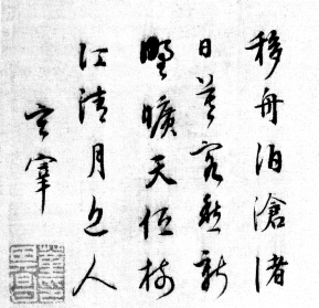 淡到看不见诗了,才是真正孟浩然的诗,不,说是孟浩然的诗,倒不如说是诗的孟浩然,更为准确。在许多旁人,诗是人的精华,在孟浩然,诗纵非人的糟粕,也是人的剩余。在最后这首诗里,孟浩然几曾作过诗?他只是谈话而已。甚至要紧的还不是那些话,而是谈话人的那副“风神散朗”的姿态。读到“求之不可得,沿月棹歌还”,我们得到一如张洎从画像所得到的印象,“风仪落落,凛然如生”。得到了象,便可以忘言,得到了“诗的孟浩然”,便可以忘掉“孟浩然的诗”了。这是我们前面所提到的“诗如其人”或“人就是诗”的另一解释。