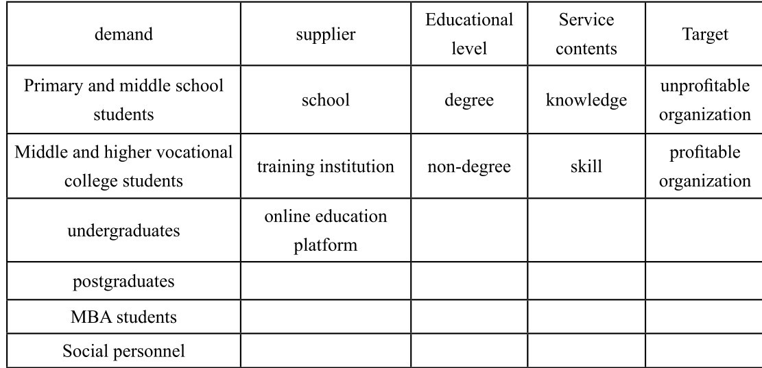 (3) The demand segment of education service (Tab.1).