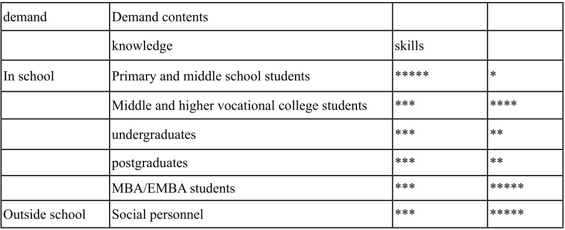 Tab.1 The demand segment of education service