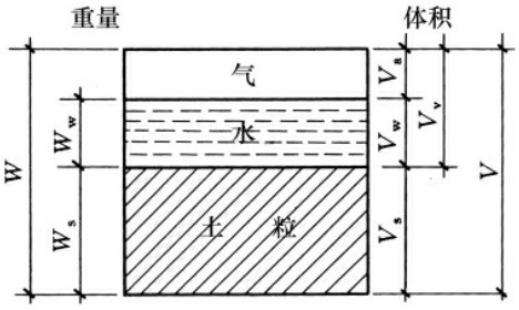 通常认为空气的重量可以忽略,即Wa≈0,则土样的重量就仅为水和土粒重量之和,即W=Ww+Ws。