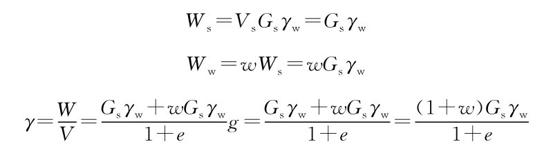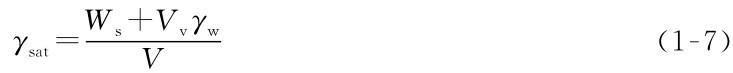 当土孔隙中全部充满水时,单位体积土的重量称为土的饱和重度γsat,其表达式为: