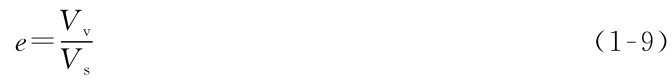 土中孔隙的体积Vv与土粒体积Vs之比,称为土的孔隙比,以小数计,其表达式为: