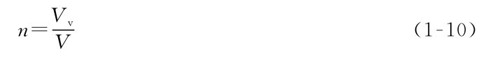土中孔隙的体积Vv与土的总体积V之比,称为土的孔隙率,以百分数表示,其表达式为: