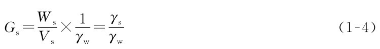 土粒重量与同体积4℃时水的重量之比,称为土粒相对密度(无量纲),其表达式为:
