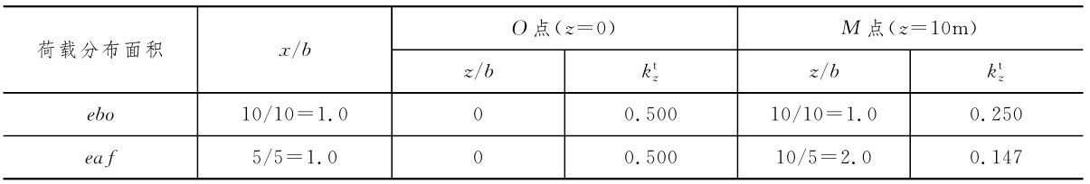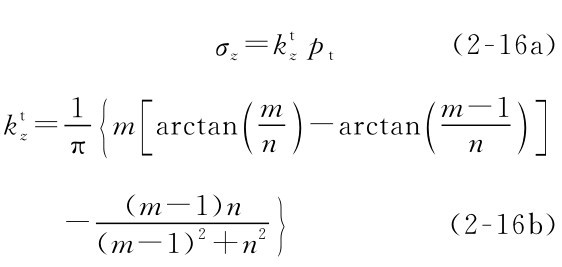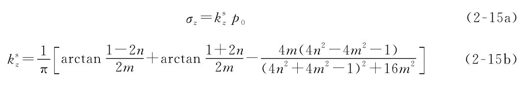 ②计算矩形荷载面边上点M之下的附加应力(图2-18(b))时,其附加应力系数为