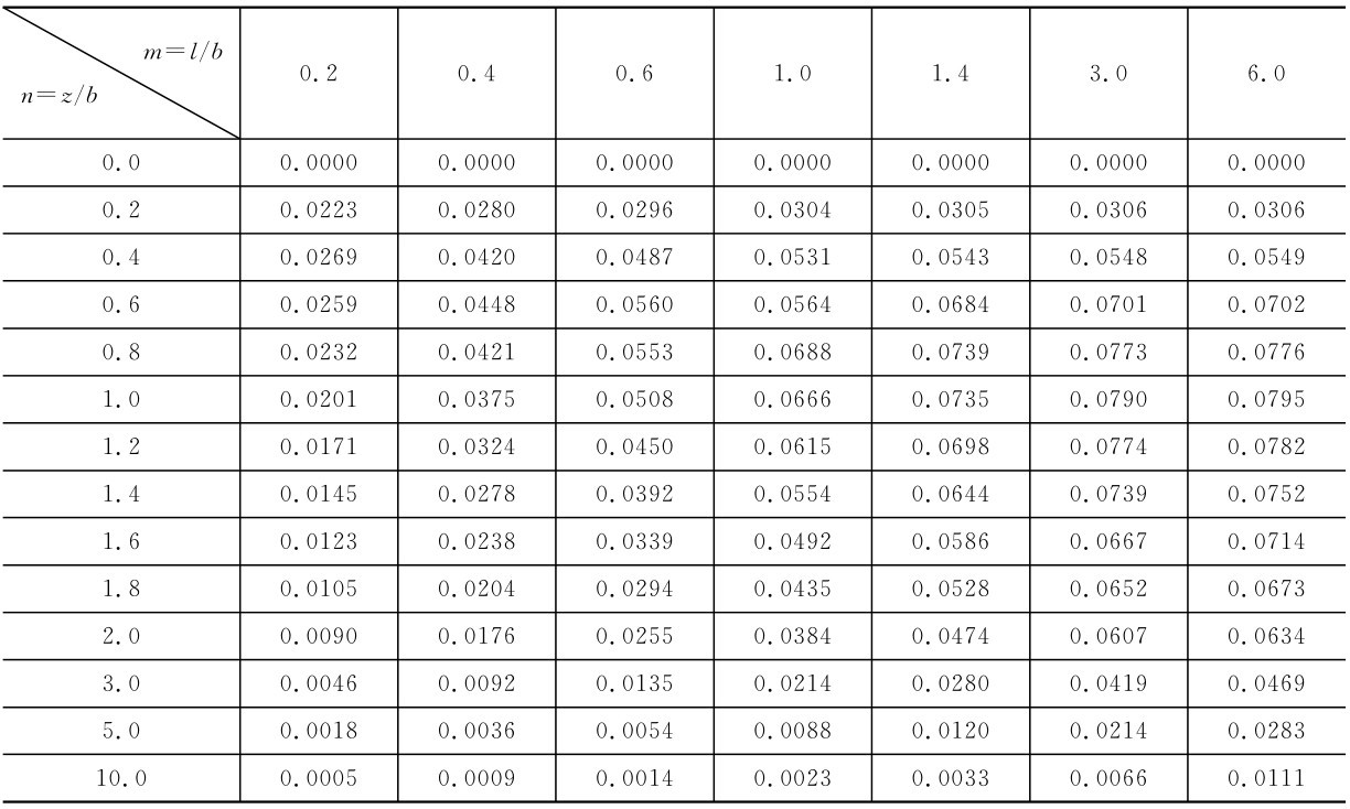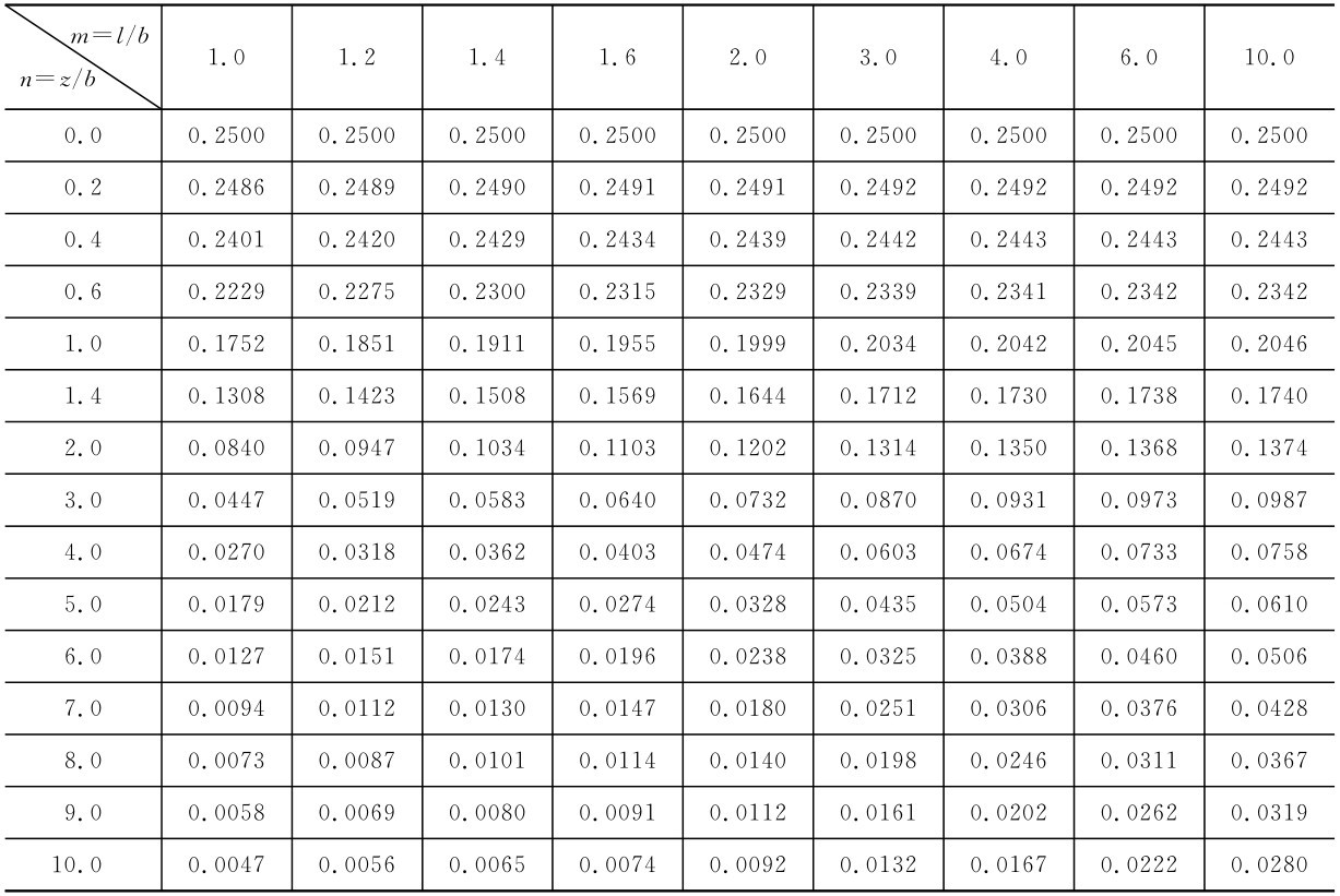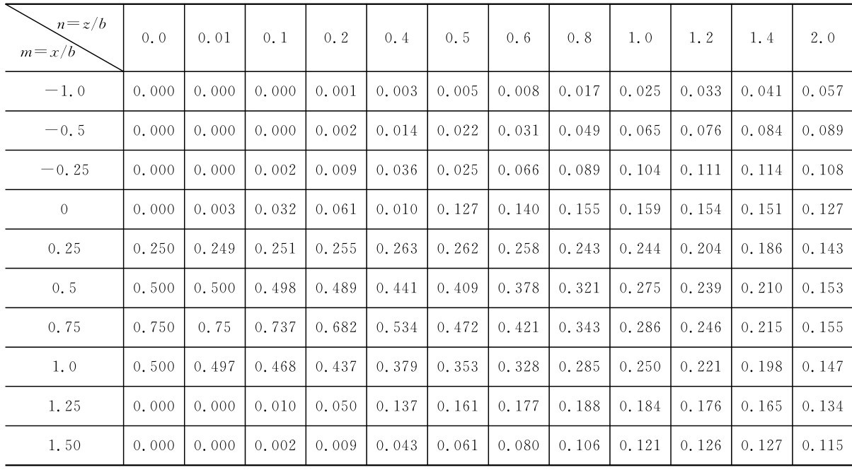 Kt为m=l/b,n=z/b的函数,也可查表2-6得到。