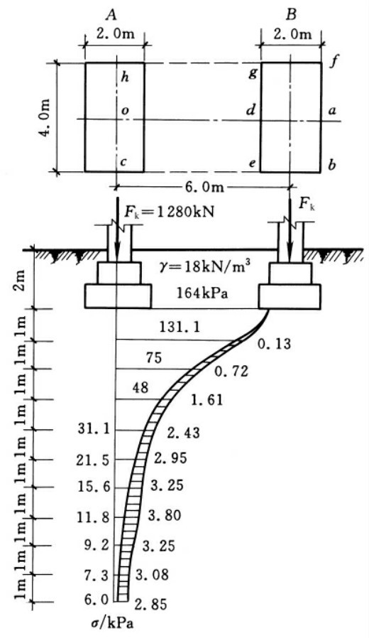 (2)若考虑相邻基础的影响,附加应力要增加多少?