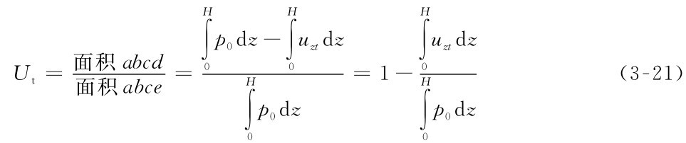 土层的固结度也可表示为某一时刻的有效应力面积与最终时刻的有效应力面积之比,在图3-16中,可用下式表示: