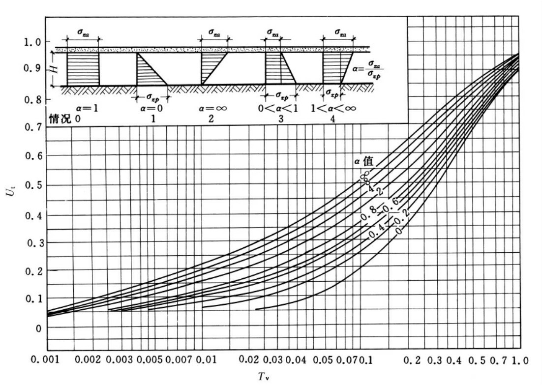 所以,只要能求出任一时刻t的固结度,即可求出该时刻相应的沉降量st=Uts。