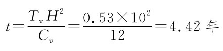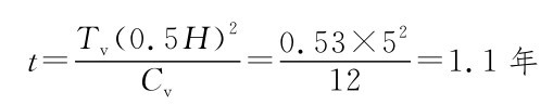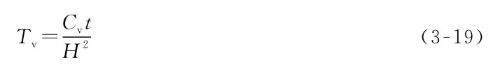 H——排水最长距离(cm),当土层为单面排水时,H等于土层厚度;当土层上下双面排水时,H取土层厚度的一半;