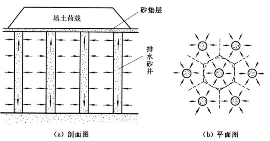 图3-18 砂井排水和排水方向