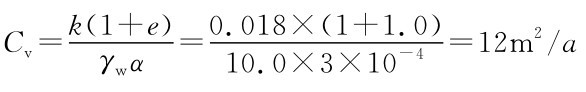 式中 Cv——固结系数,