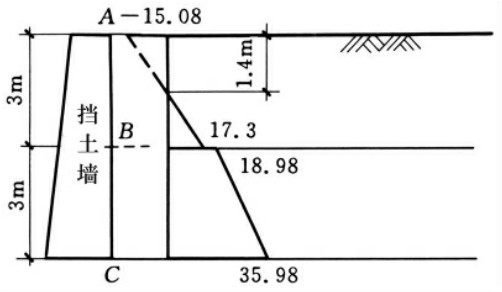 (2)第二层(即下层)土土压力计算先将上层土折算成当量土层,厚度为