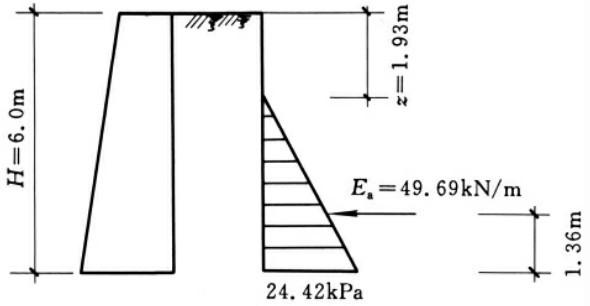 解 因墙背垂直、光滑,填土面水平,可直接用朗金理论计算。主动土压力系数Ka为:
