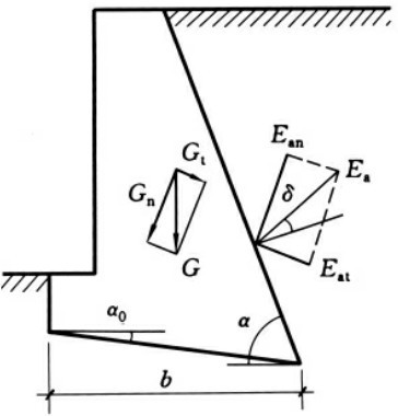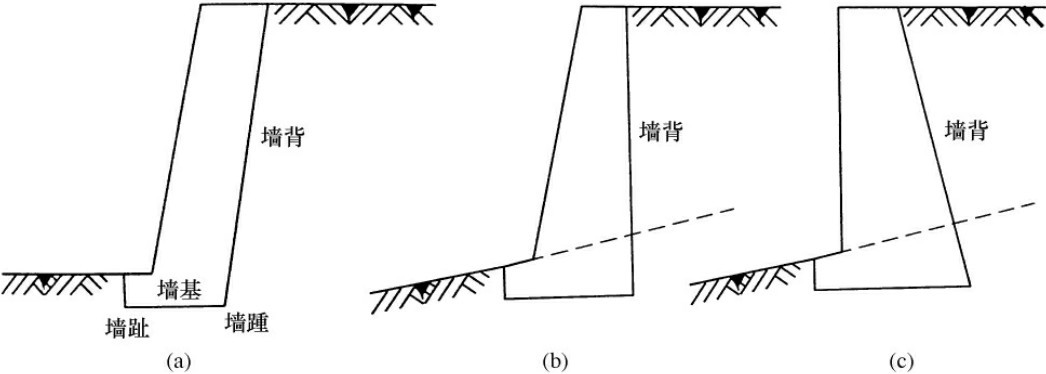 图6-10 重力式挡土墙墙背倾斜形式