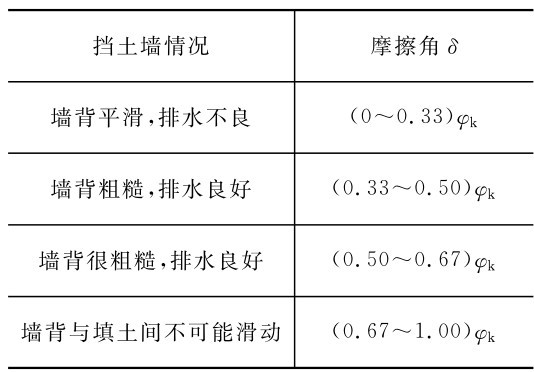 注:φk为墙背填土的内摩擦角标准值,其值的确定方法见第8.4节内容。