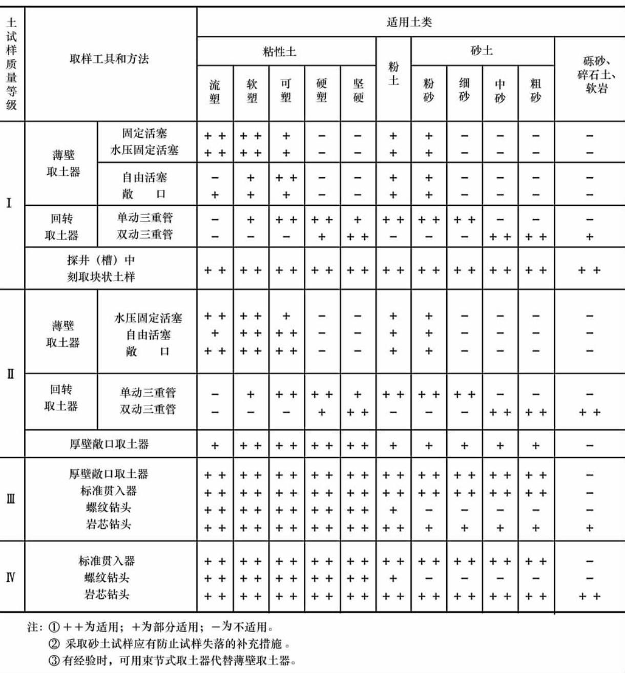 (1)在软土、砂土中宜采用泥浆护壁,如使用套管,应保持管内水位等于或稍高于地下水位,取样位置应低于套管底三倍孔径的距离;