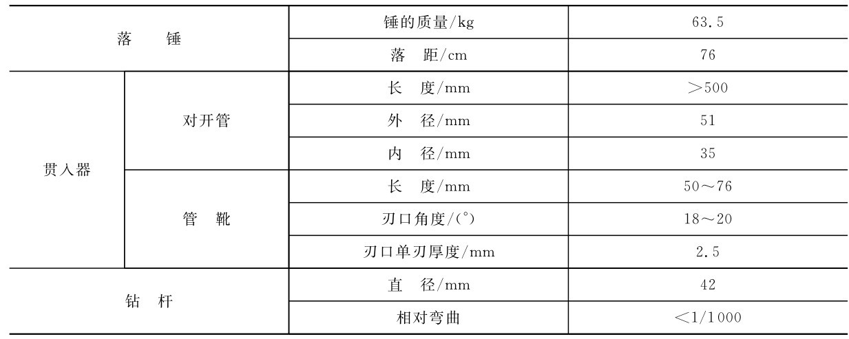 标准贯入试验实质上属于动力触探类型之一,所不同的是,其触探头不是圆锥形探头,而是标准规格的圆筒形探头(两个半圆管合成的取土器),称之为贯入器。因此,标准贯入试验就是利用一定的锤击动能,将一定规格的对开管式贯入器打入钻孔孔底的土层中,根据打入土层中的贯入阻力,评定土层的变化和土的物理力学性质。贯入阻力用贯入器贯入土层30cm的锤击数用N表示,也称标贯击数。标准贯入试验适用于砂土、粉土和一般黏性土。