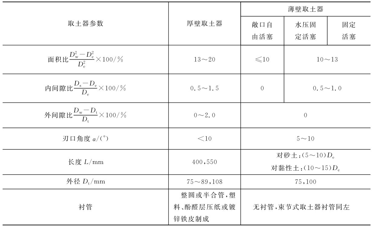 Dw—取土器管靴外径,对薄壁管Dw=Dt。