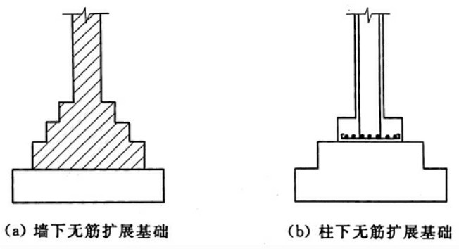 扩展基础一般系指柱下钢筋混凝土独立基础和墙下钢筋混凝土条形基础。扩展基础的抗弯和抗剪性能良好,可在竖向荷载较大、地基承载力不高以及承受水平力和力矩荷载等情况下使用,因此扩展基础也称为柔性基础。