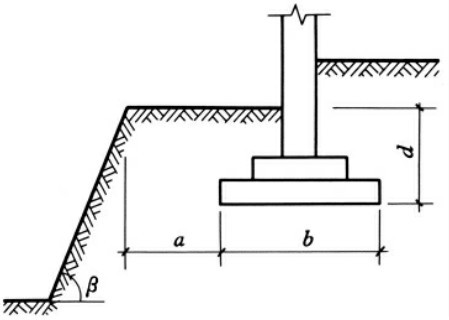 式中 a——基础底面外边绿线至坡顶的水平距离,m;
