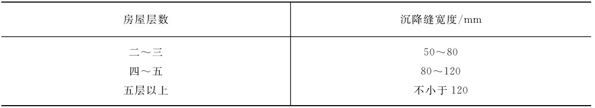 沉降缝应有足够的宽度,缝宽可按表8-7选用。