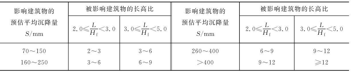 注: ①表中L为建筑物长度或沉降缝分隔单元长度(m);Hf为自基础底面起算的建筑物高度(m)。