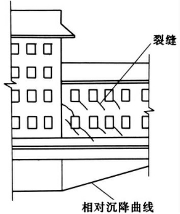 由于地基附加应力的扩散作用,使相邻建筑物近端的沉降均增加。在软弱地基上,同时建造的两座建筑物之间、新老建筑物之间,如果距离太近,均会产生附加的不均匀沉降,从而造成建筑物的开裂或互倾,甚至使房屋整体横倾大大增加。