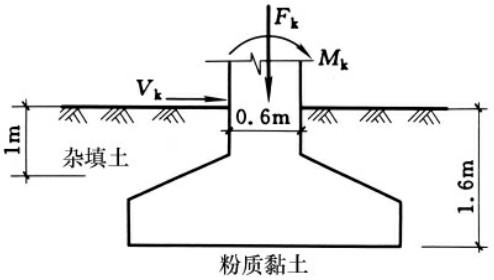 8-2 某工业厂房采用钢筋混凝土独立基础,如图8-39所示,荷载效应标准组合时,作用在基础顶部的荷载Fk=800k N,Mk=112k N·m,Vk=20k N。杂填土厚度1m,重度γ=19.0k N/m3,其下为粉质黏土,γ=18.5k N/m3,fak=240k Pa,ηb=0.3,ηd=1.6,试确定基础底面尺寸。