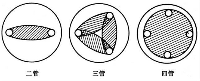 声测管的数量根据桩径的大小确定,测管数量越多,测区覆盖面积就越大。建筑基桩检测技术规范(JGJ106-2014)对声测管埋深数量的规定如下:桩径小于或等于800mm时,不得少于2根声测管;桩径大于800mm且小于或等于1600mm时,不得少于3根声测管;桩径大于1600mm时,不得少于4根声测管;桩径大于2500mm时,宜增加声测管数量。